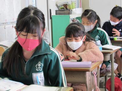 ◆4年生の国語は、文章構成を考え終わり、説明文の清書に入っているね。