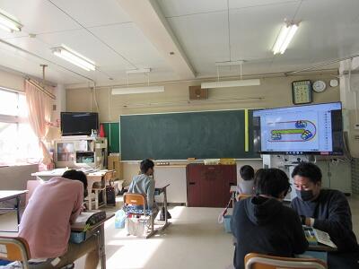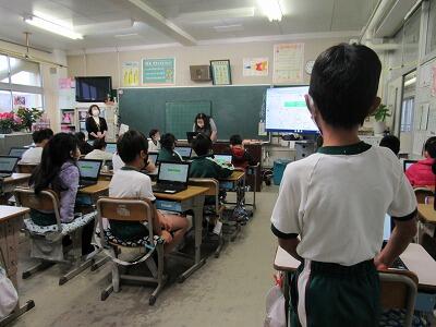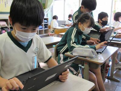 ◆Googleアースを活用して、幸松小の周辺から日本全国までの様子を調べている5年生。