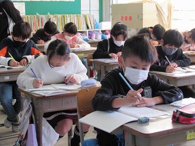姿勢もよく、一生懸命に2学期のまとめに取り組んでいるよ。