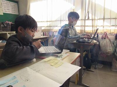 パソコンで調べたり、文章を書き始めたり、「個別最適な学び」が展開されています。