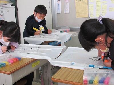 ◆クリスマスカードを作っている1年生!!