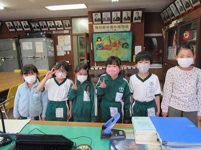 ◆朝一番、5年生が「校長室の小さな美術館」の作品を鑑賞に来ているよ。