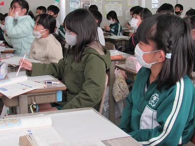 家庭科で、季節に合った衣服について実際に身に付けているんだね。