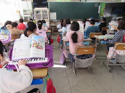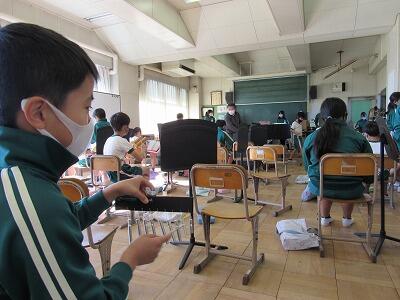◆音楽室が、4年生の合奏でコンサートホールになっているよ。
