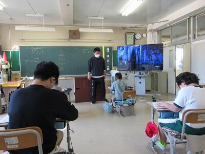 ◆6年生の国語は、「古典芸能」の1つである「狂言」のDVDを視聴しているよ。