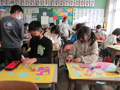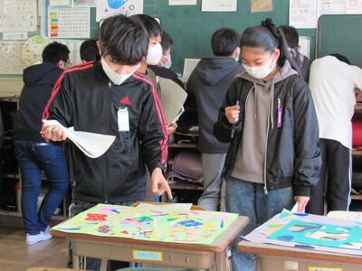 ◆6年生も、学習のまとめとして、友達の作品を鑑賞しているよ。