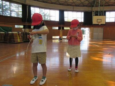 ◆4年生の体育は、短なわの個人技を高めていってるよ。