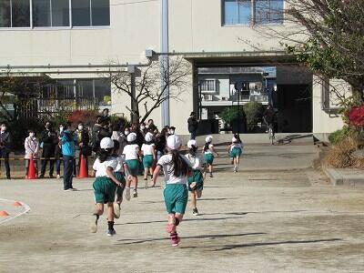 6年生は、小学校での最後の持久走大会だね。まずは6年生女子。