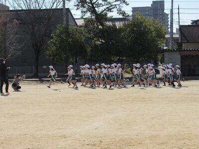◆「ヨーイ、スタート!」 1年生が持久走大会の練習です。