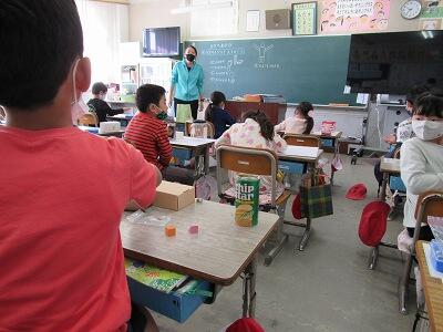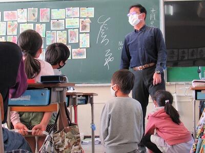 代表児童の言葉、先生からの話を聞いて、お家の方と帰ります。