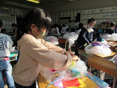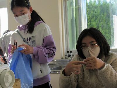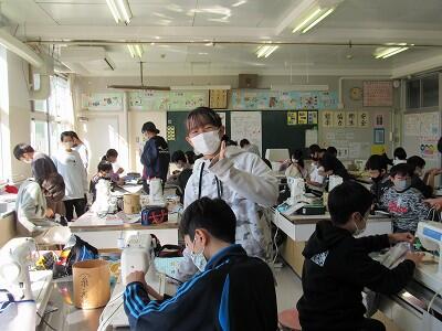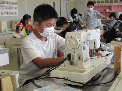 ◆家庭科室の6年生は、自分の袋づくりが完成しつつあるようだね。