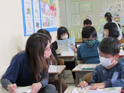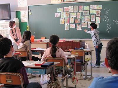 こちらの教室では、自分の表現を紹介し合っているよ。