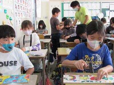 日ごろの図工とは違う表現方法を知って、ビックリだね。