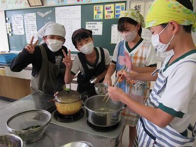 5年生は、白いご飯を炊いて、みそ汁を作っているよ。