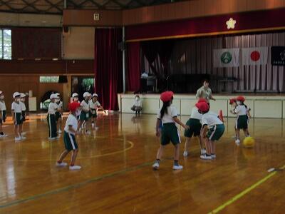 ボールを投げる、取る、さけるなど、楽しそうに運動しているなあ。