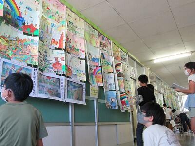 ◆5年生は、3学級の作品を鑑賞しているよ。