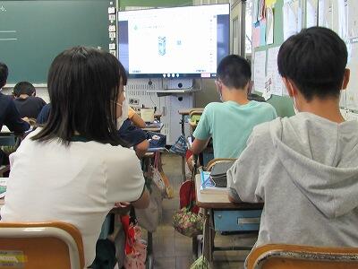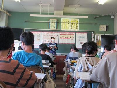 ◆昨晩の地震について、全校で指導しています。こちらは、2年生。