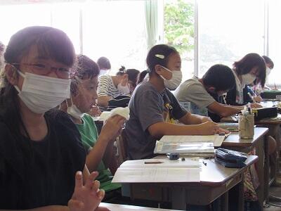 ◆6年生との社会の授業が終わると、5、6人の子どもたちが話しかけてきます。