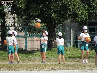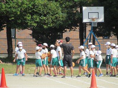 ◆校庭では、2年生が表現運動の練習に取り組んでいるよ。