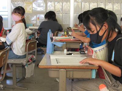 5年生の毛筆は、いつも姿勢がよく、気持ちが伝わってきますよ。