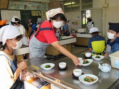◆5年生は、ほうれん草を使って、調理実習中だよ。