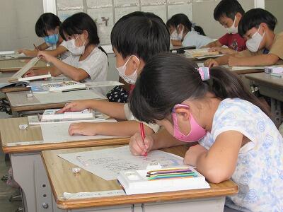◆「ごんぎつね」の物語のその後を想像し、第7場面を書き進める4年生。