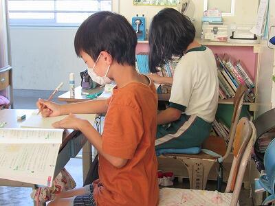 1年生は、国語「くじらぐも」を読んで、感想を書いているところだよ。