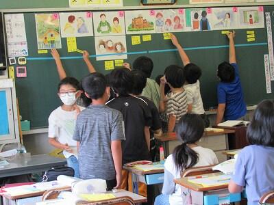 ◆4年生は、単元「ごんぎつね」で、気持ちの変化を読み、考えたことを話し合います。