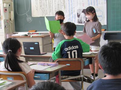 ◆となりの2年生は、お手紙の内容を紹介し合っているよ。