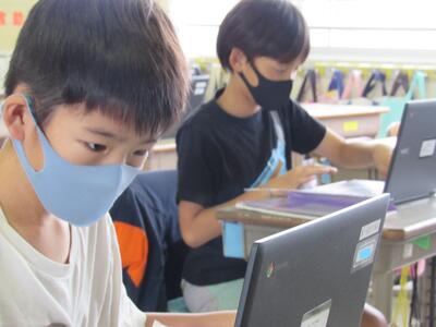 また、来週は、児童が自宅にパソコンを持ち帰り、自宅と学校をオンラインでつなぐ試験を行います。