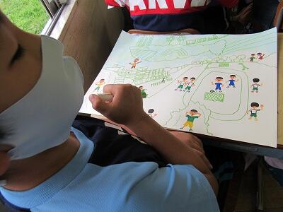 屋上から見た学校の周りの様子を基に、問題意識を高め、イメージを膨らませていきます。