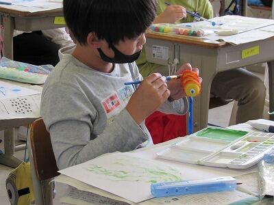 「校長先生、図工って楽しいです。」 「想像力を働かせて、表現していこうね。」
