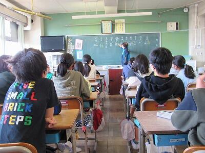 ◆5年生は、国語の教科書を開き、詩の世界を体も使って表現しています。