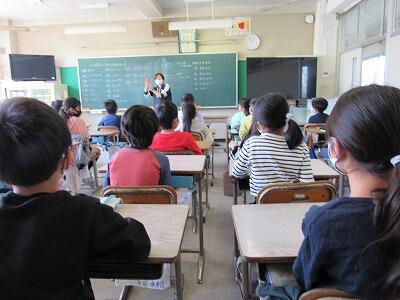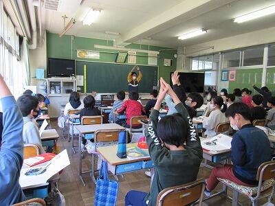 ◆5年生は、国語の教科書を開き、詩の世界を体も使って表現しています。
