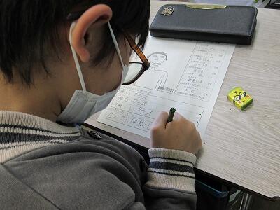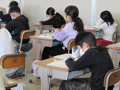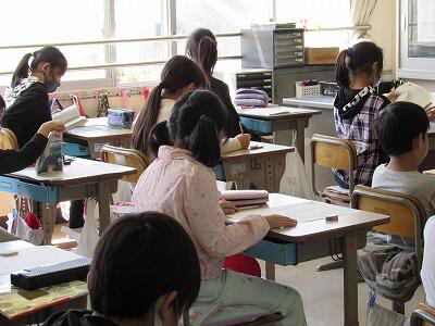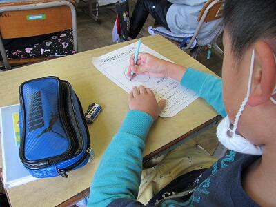 ◆6年生は、学習に使うノートを準備です。名前を丁寧に書いていますね。