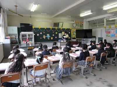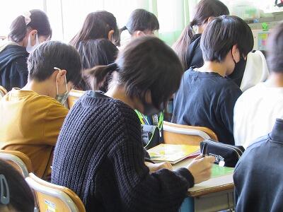 ◆3年生は、学級の係活動が決まったようです。先生の話に集中です。