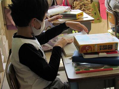 ◆4年生は、分からない言葉を辞書を使ってササっと調べます。