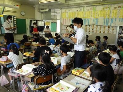 3時間目の教室では、いろいろな教科で大型モニターが使われていました。