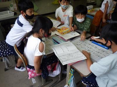 2年生も、学期に数回だけ外国語に触れる時間があります。