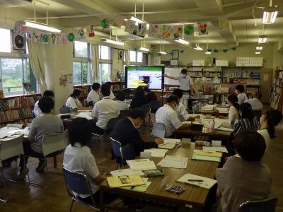 大型モニターが各教室に設置されてから半年ほどですが、すでに授業に欠かせない教具となっています。