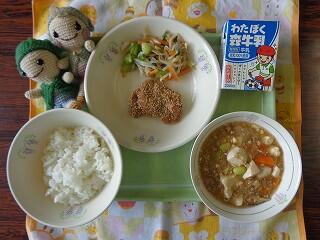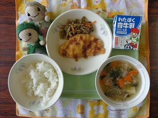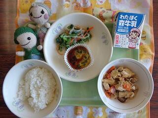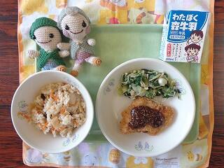 6月4日から10日は、歯と口の健康週間です。歯と口を健康に保つ第一歩は、よくかんで食べることです。今日の献立は、よくかんで食べる食材を多く取り入れた「かみかみ献立」です。