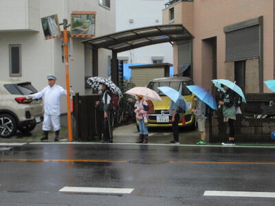 (3) 本校の正門付近は間口が大変狭いです。引き取りの際、保護者の皆様が車で来てしまうと混乱してしまいます。徒歩または自転車でお願いします。