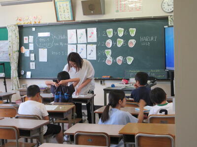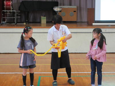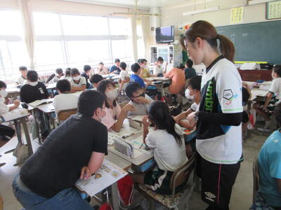 講師の先生のテンポのよい楽しい指導により1年生は大変意欲的に取り組んでいました。