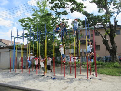 2個のコーンを回り競争です。全力で走っている姿がとてもさわやかです。
