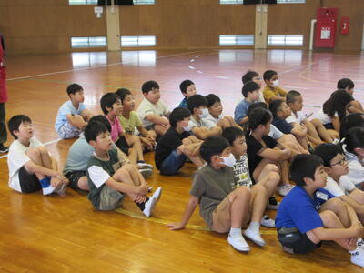 ★今日は、昼休みに陸上オリエンテーションがあり、4~6年生が体育館に集合しました。
