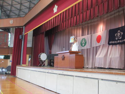 た。入学して1か月もたっていない1年生が校歌をとても楽しそうに歌っている姿に、心が温かくなり幸せな気持ちに