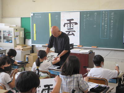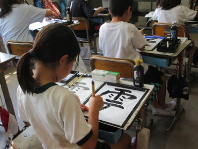 ★5年生に習字に取組んでいました。「道」とういう字を書いていました。しんにょうが難しそうでした。