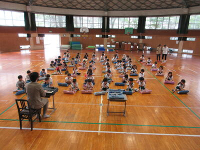 幸松っ子のみなさん、今日は引き取り訓練を行います。災害の時など、みなさんの安全を第一に考えお家の方にみなさんを引き取っていただきます。災害はいつ起こるかわかりません。1人でいる時に起こる場合もあります。いつでも自分の命は自分で守ることが重要です。避難訓練や今日のような訓練の時に改めて考えなおすことが、自分の命を守ることにつながります。今日は、お家の方といっしょに、通学路で危ないところはないか、もし家などで地震が起きた時どんな行動をとればいいかなど話し合って災害への意識を高めてください。