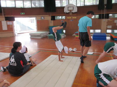 ★3年生は体育で3点倒立にチャレンジしていました。今日初めてできた人もいました。