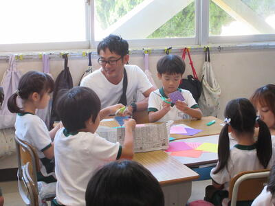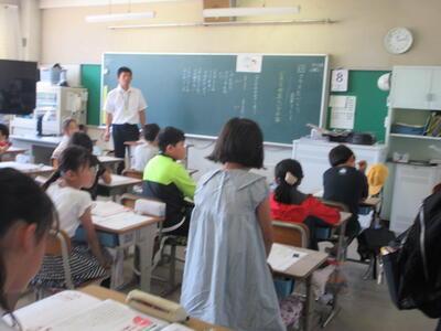 ★今日は教育実習の最終日でした。5時間目はお別れ会です。楽しくゲームをやっていた時間におじゃましました。